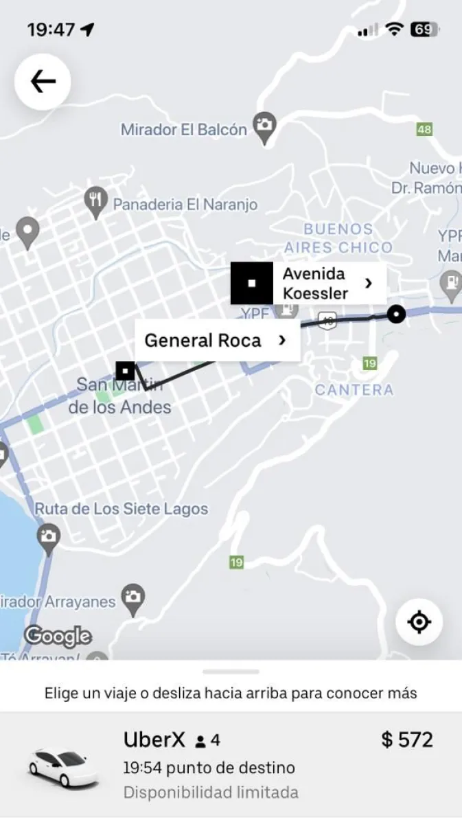 Uber ya muestra a San Martín de los Andes en sus mapas
