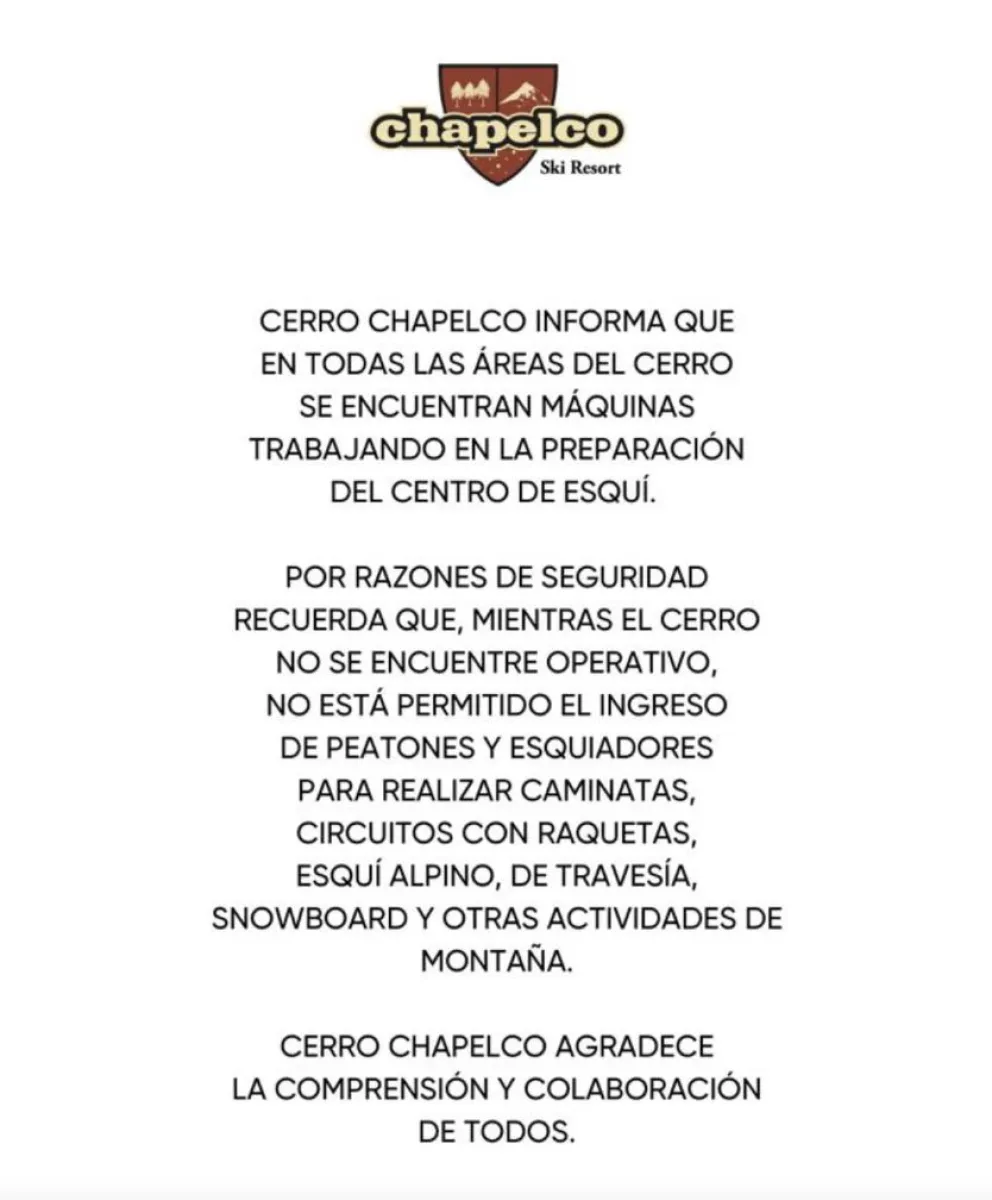 Chapelco, por su parte, aún no confirmó oficialmente la fecha de apertura de la temporada. Aunque sí alertó, a través de su cuenta de Instagram, que se está trabajando en toda la montaña para la puesta a punto del centro de esquí.