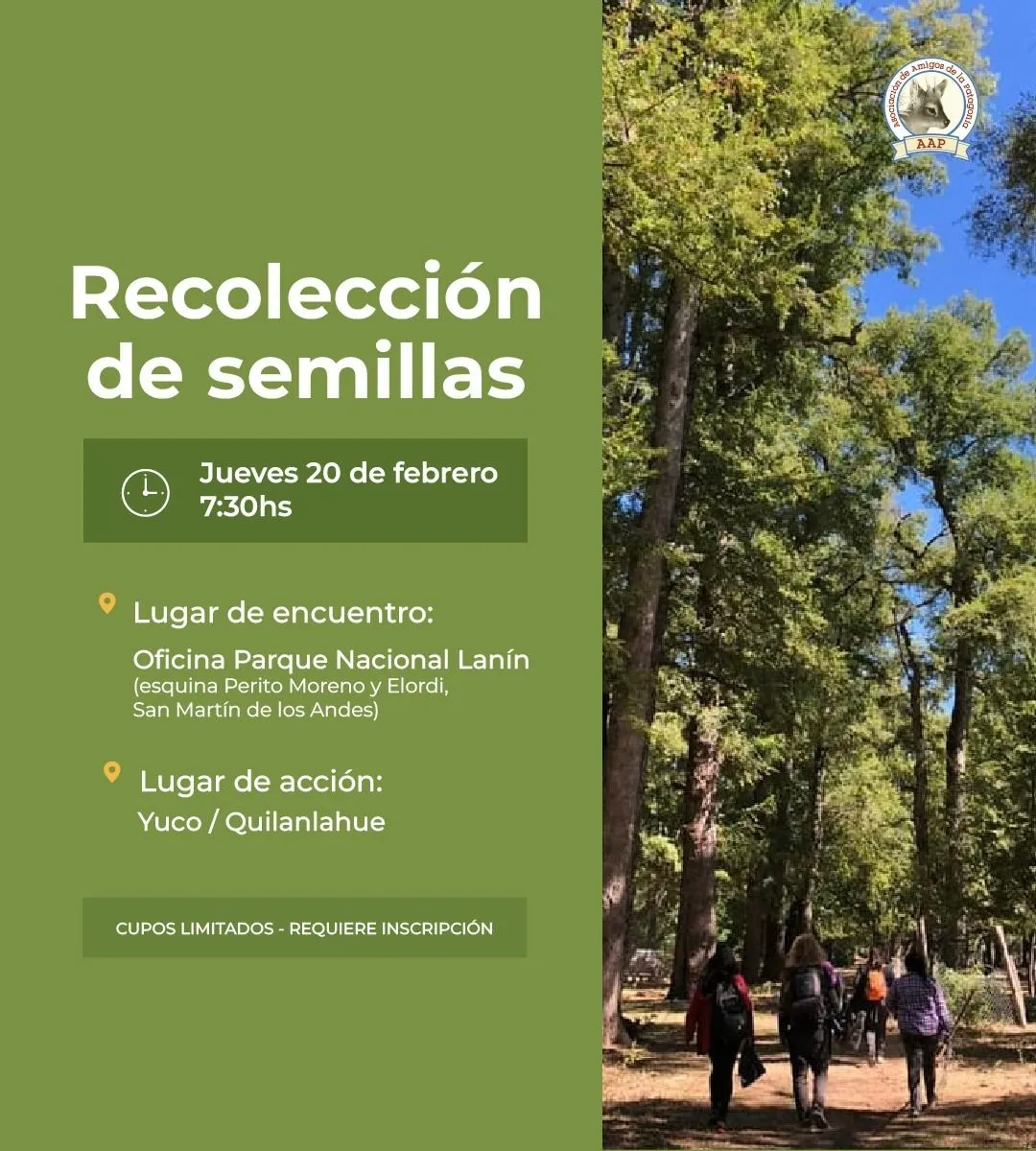 La Asociación de Amigos de la Patagonia realizará este jueves 20 de febrero, junto al Parque Nacional de Lanín, una recolección de semillas para continuar con la restauración. Será a las 7:30 hs en Yuco/Quilanlahue.