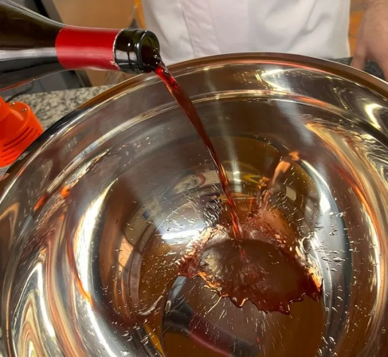 ¿Los responsables? Pablo Pellico de Heladería San Martín y quien escribe, Juampi La Porta. El Pinot Noir aporta acidez, los frutos rojos le dan frescura y el chocolate un tropiezo sabrosamente crocante, es como si Italia y la Patagonia se besaran mucho y a partir de ahí naciera este hijo prodigio de sabor.