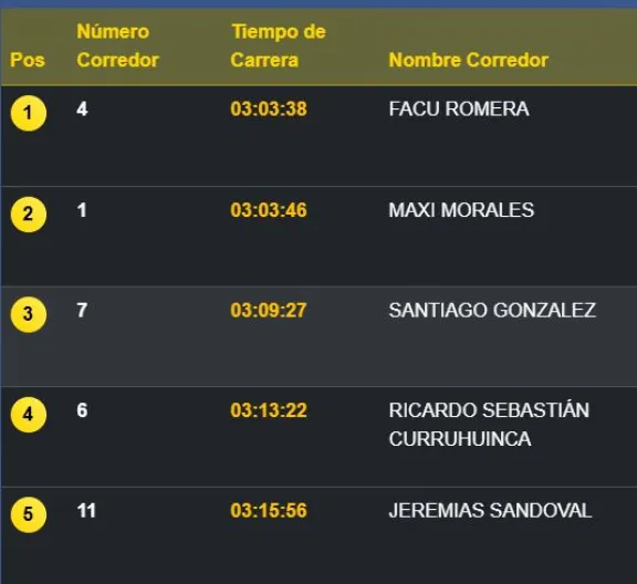 10.10 Ricardo Curruhuinca aparece en el tercer lugar de la general. Demateo sigue primera en damas seguida por Ferroni y Curutchet.