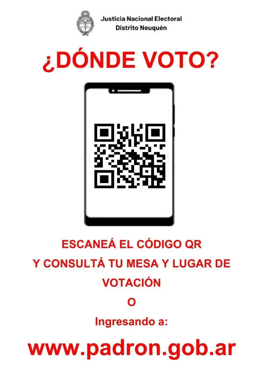 El padrón puede consultarse ingresando al sitio web oficial padrón.gob.ar , donde se encuentra disponible tanto el buscador de votantes como el acceso al QR para realizar la consulta directa desde dispositivos móviles.
