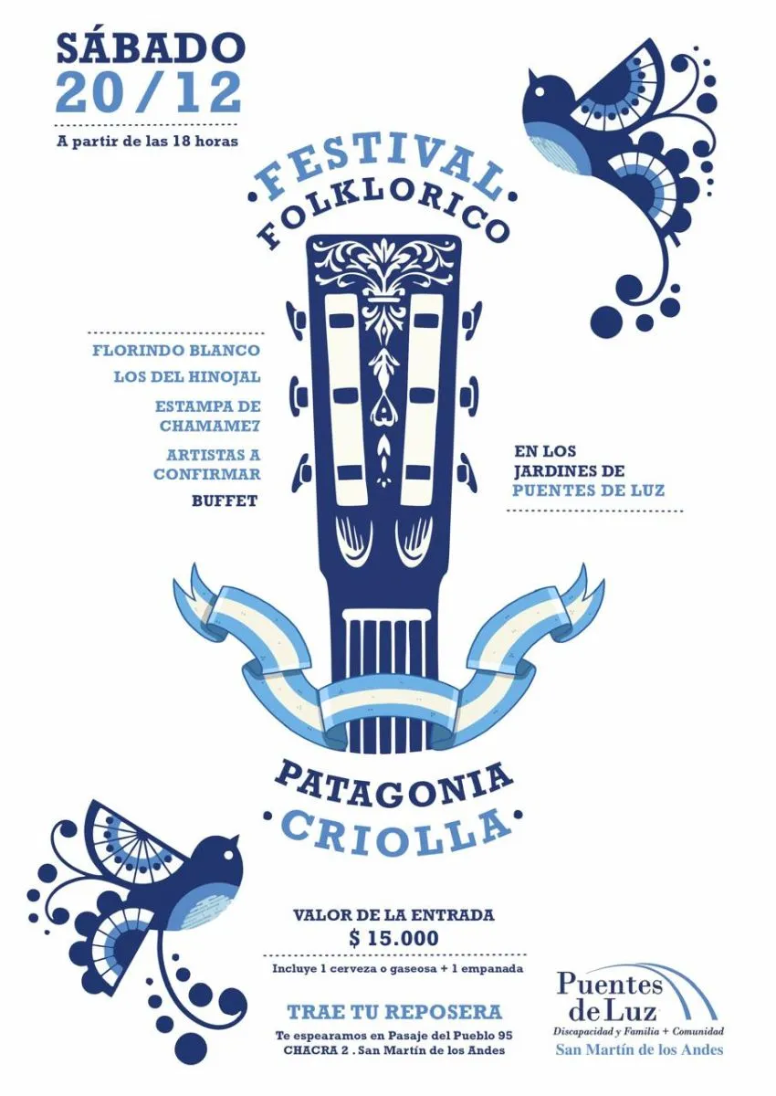La ONG Puentes de Luz anunció la realización del Festival Folklórico “Patagonia Criolla”, que se llevará a cabo el próximo 20 de diciembre desde las 18 horas en los jardines de la institución, en Chacra 2, con el objetivo de recaudar fondos en un contexto especialmente complejo para el sector de la discapacidad.