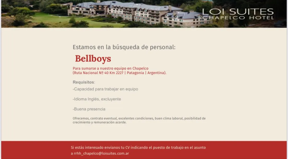 Bellboy para Loi Suites Chapelco Hotel