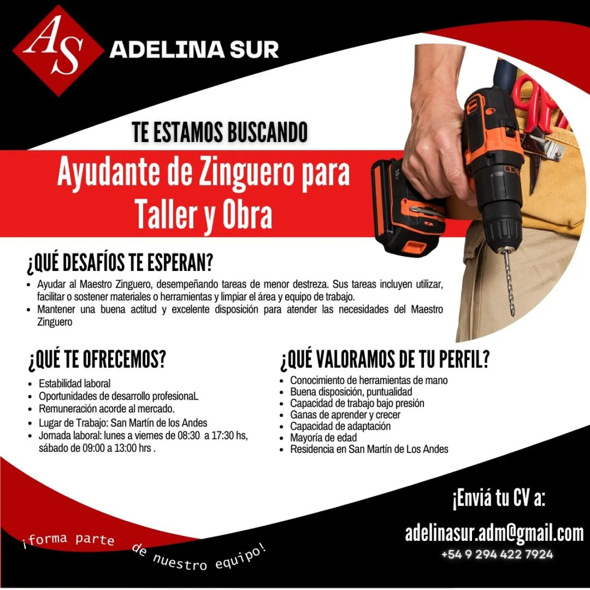 Aviso laboral Ayudante de zinguero para Adelina Sur BOLSA DE TRABAJO 08/01/2026 Te puede interesar Aviso laboral Chofer de taxi Aviso laboral Empleado/a para heladería Aviso laboral Personal administrativo para Préstamos Valor Global Aviso laboral Ayudante de cocina para Hotel Patagonia Plaza Aviso laboral Personal masculino para comercio Aviso laboral Medio jornada recepción Aviso laboral Personal de limpieza Aviso laboral Chofer de taxi Últimas noticias Conflicto gremial destrabado Tras una reunión con el intendente Saloniti, se normalizan los servicios municipales en San Martín de los Andes Conflicto institucional en el fútbol argentino La AFA anunció un paro de cuatro días y suspendió la fecha 9 de la Liga Profesional Siniestro vial en la cordillera Fatal choque en la Ruta 60: una mujer murió y cuatro personas resultaron gravemente heridas Infraestructura rural Neuquén espera la autorización nacional para iniciar la pasarela sobre el Cuyín Manzano Pronóstico regional Ingresa aire frío y húmedo en la cordillera y anticipan lluvias hacia fin de mes Aviso laboral Chofer de taxi