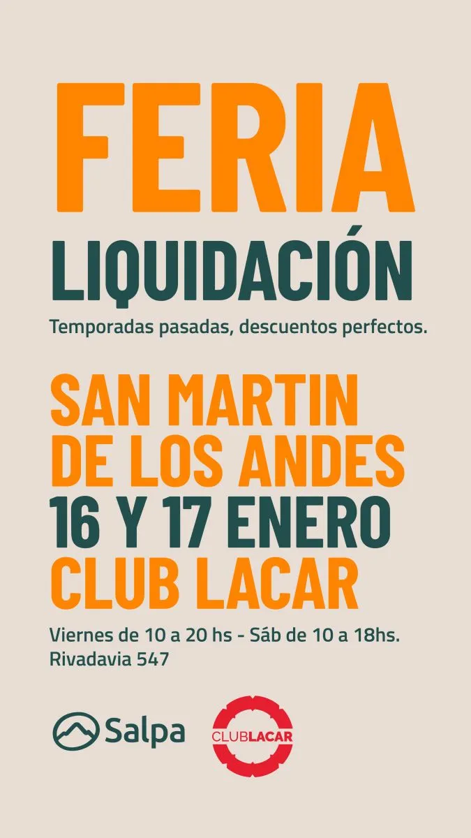 San Martín de los Andes vuelve a ser punto de encuentro entre el deporte, la identidad local y el espíritu emprendedor. Salpa, la marca de indumentaria deportiva nacida en la ciudad y hoy consolidada a nivel nacional, realizará una feria–liquidación este viernes y sábado en el Club Lácar, con precios de fábrica y una amplia variedad de productos.