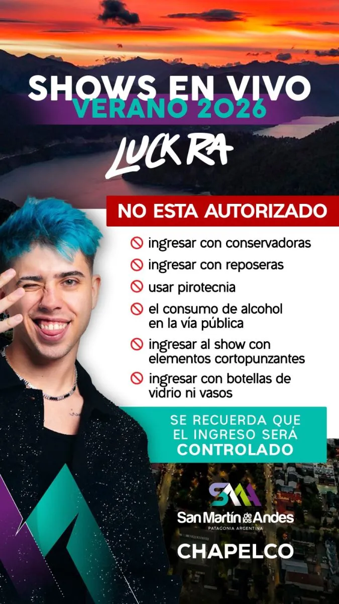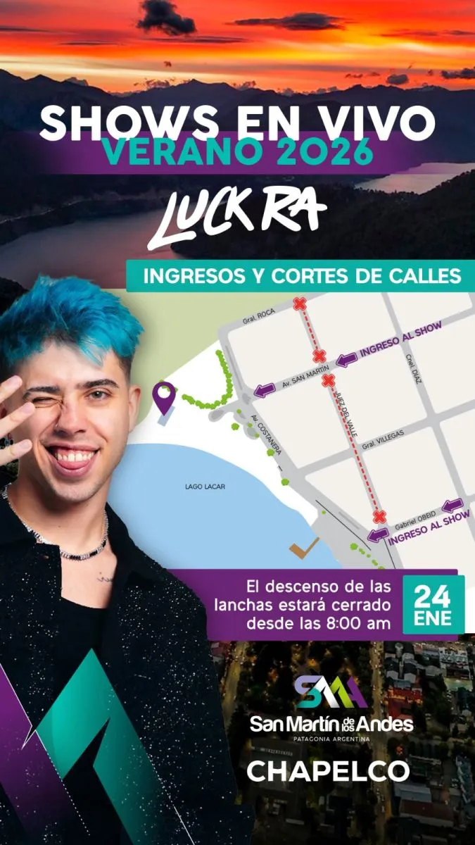 San Martín de los Andes se prepara para vivir uno de los eventos musicales más convocantes del verano. El reconocido artista Luck Ra se presentará este sábado 24 de enero en un recital gratuito y al aire libre frente al lago Lácar, en un entorno natural único de la Patagonia.
