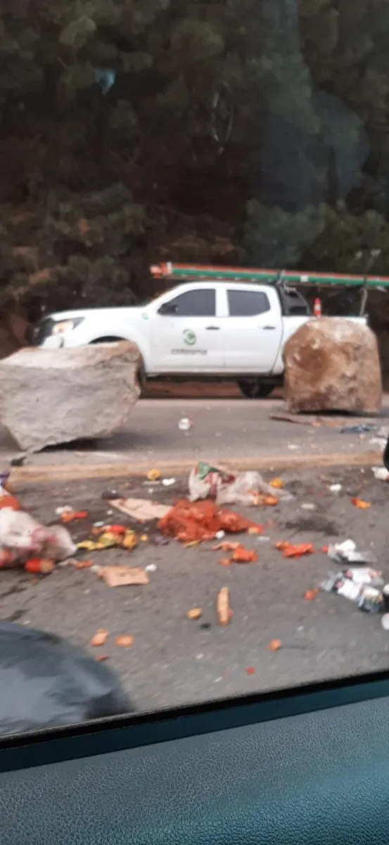 Durante el episodio, una camioneta de recolección perteneciente a la Subsecretaría de Servicios Públicos fue impactada por una de las rocas. La piedra de mayor tamaño golpeó la parte trasera del vehículo.