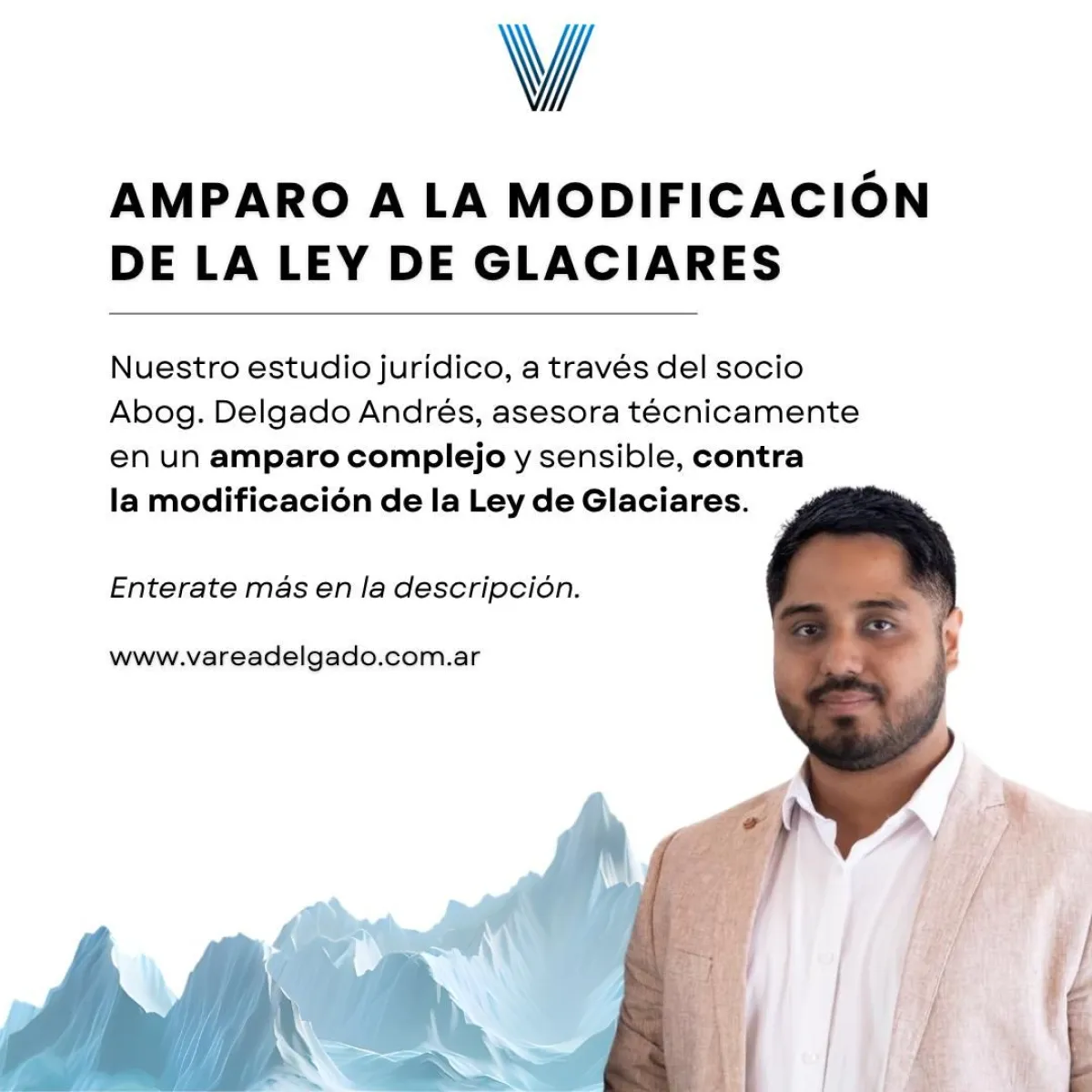En el marco del recurso de amparo promovido por legisladores provinciales frente a la reforma de la Ley de Glaciares, el Dr. Andrés Delgado, socio del estudio jurídico sanmartinense “Varea & Delgado”, junto al Dr. Juan Cruz Goñi, fue convocado para desarrollar la estrategia recursiva y técnica del caso. La causa ya se encuentra ante la Cámara Federal y proyecta a Neuquén al centro de una discusión constitucional y ambiental de alcance nacional.